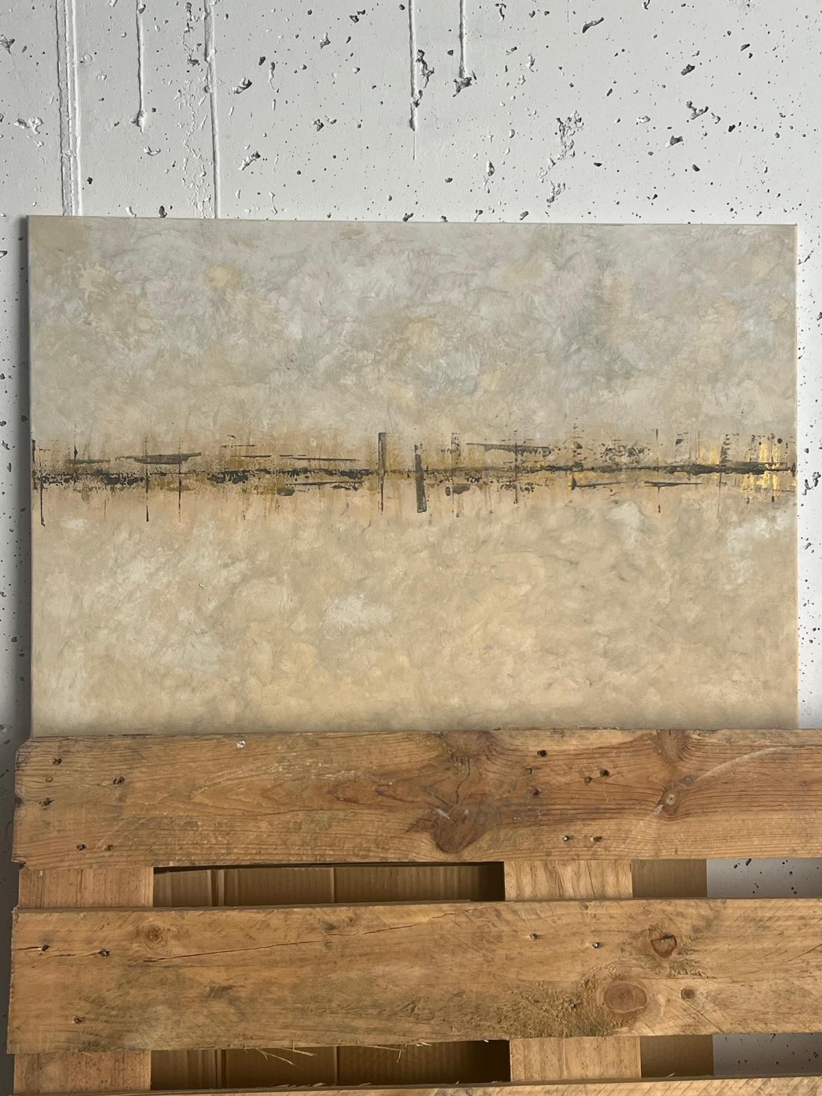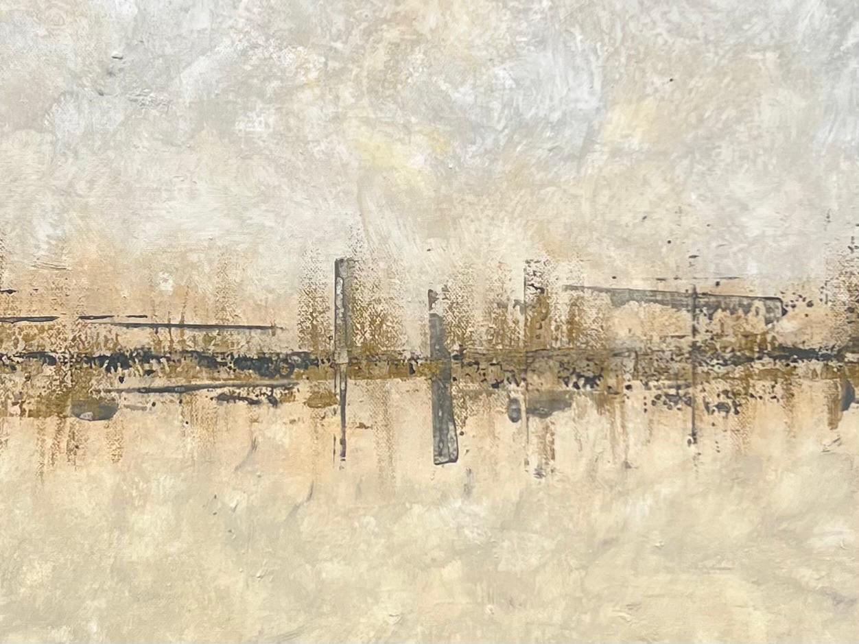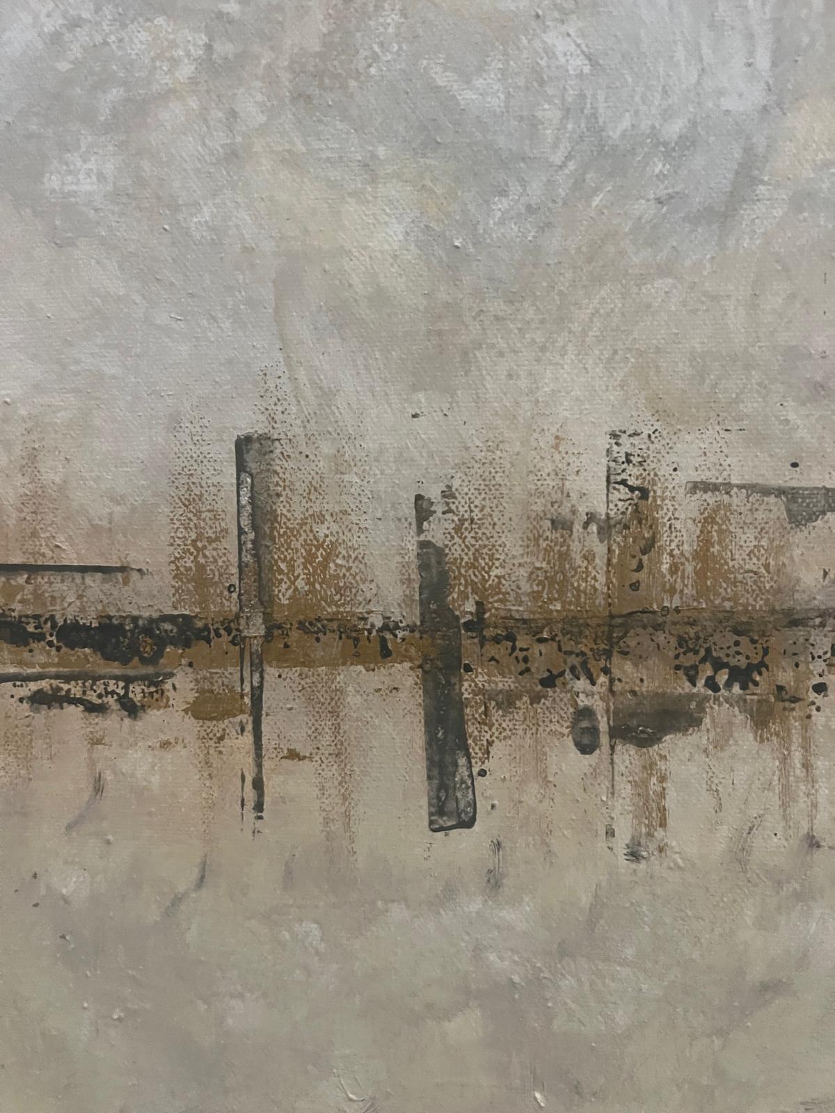Aureum, invita a contemplar un horizonte de posibilidades que solo existe en el encuentro entre lo aprendido y lo que aún está por descubrir. Esta obra surge del reto de fusionar dos mundos distintos: la densidad y textura del acrílico con la suavidad y transparencia de la acuarela. Cada pincelada de acrílico establece un fundamento sólido, un terreno donde el color adquiere cuerpo y presencia. Sobre él, el velo de la acuarela se posa con suma delicadeza, como un suspiro. Aporta una luminosidad etérea, un velo que acaricia la superficie sin alterar su estructura. El dorado, no solo como color, sino como sensación, representa la calidez y la promesa de lo desconocido. La obra es un testimonio de aprendizaje, de curiosidad y de exploración técnica, donde la fusión de acrílico y acuarela da lugar a una nueva aventura.