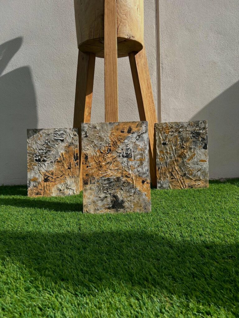Por la delicadeza del trabajo sobre tabla y el uso de texturas, esta serie requiere especial cuidado tanto en su proceso de creación como en su manipulación y exposición. Metamorfosis transforma no solo la materia, sino también el espacio en el que habita, invitando a mirarlo como un lugar renovado, más bello.