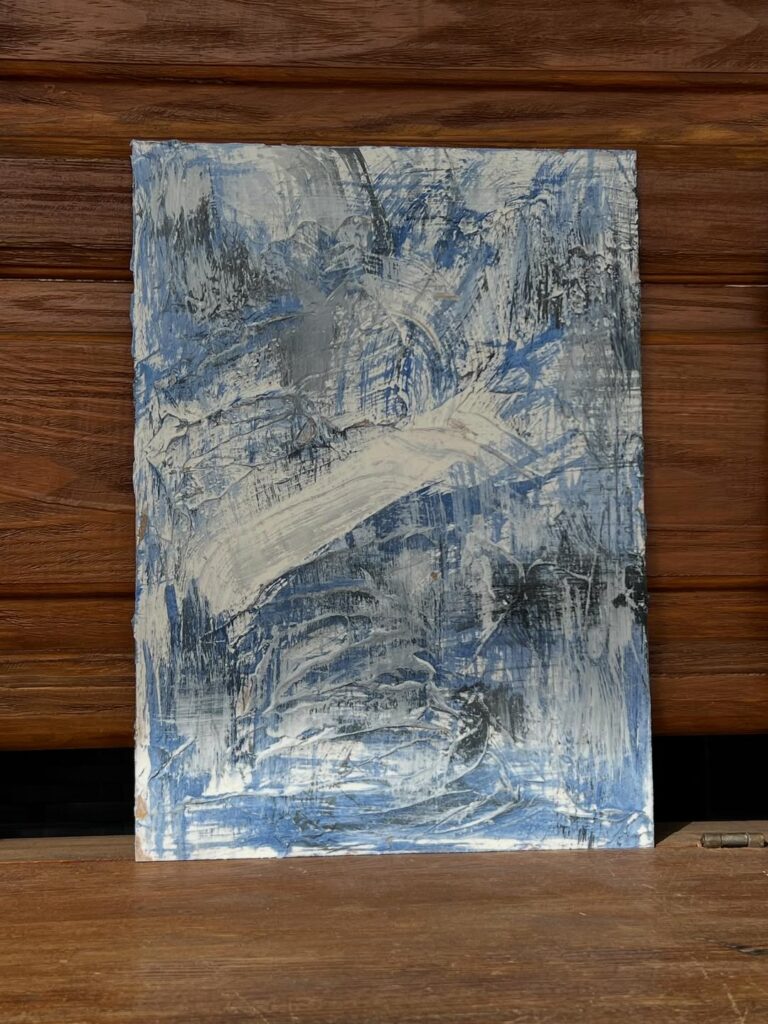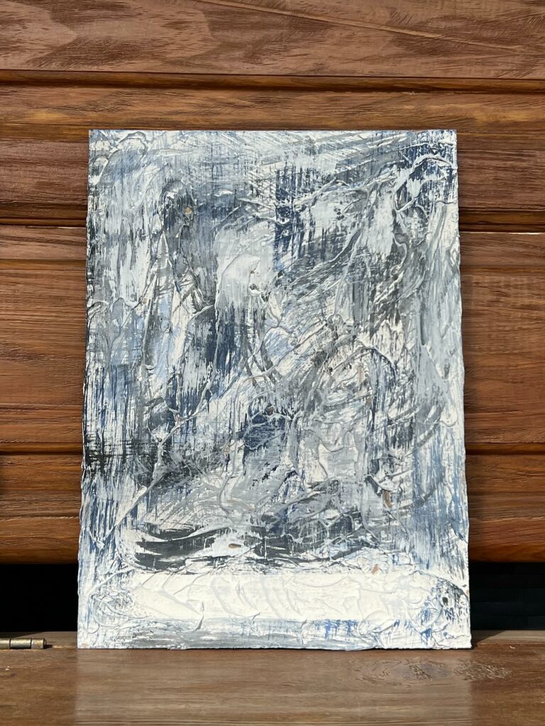 Las huellas, las marcas y las irregularidades de la tabla no se ocultan, permanecen como cicatrices visibles de su historia, testimonios de su vida anterior. Estas señales dialogan con la nueva superficie pictórica, en un proceso donde lo gastado y lo bello se entrelazan.