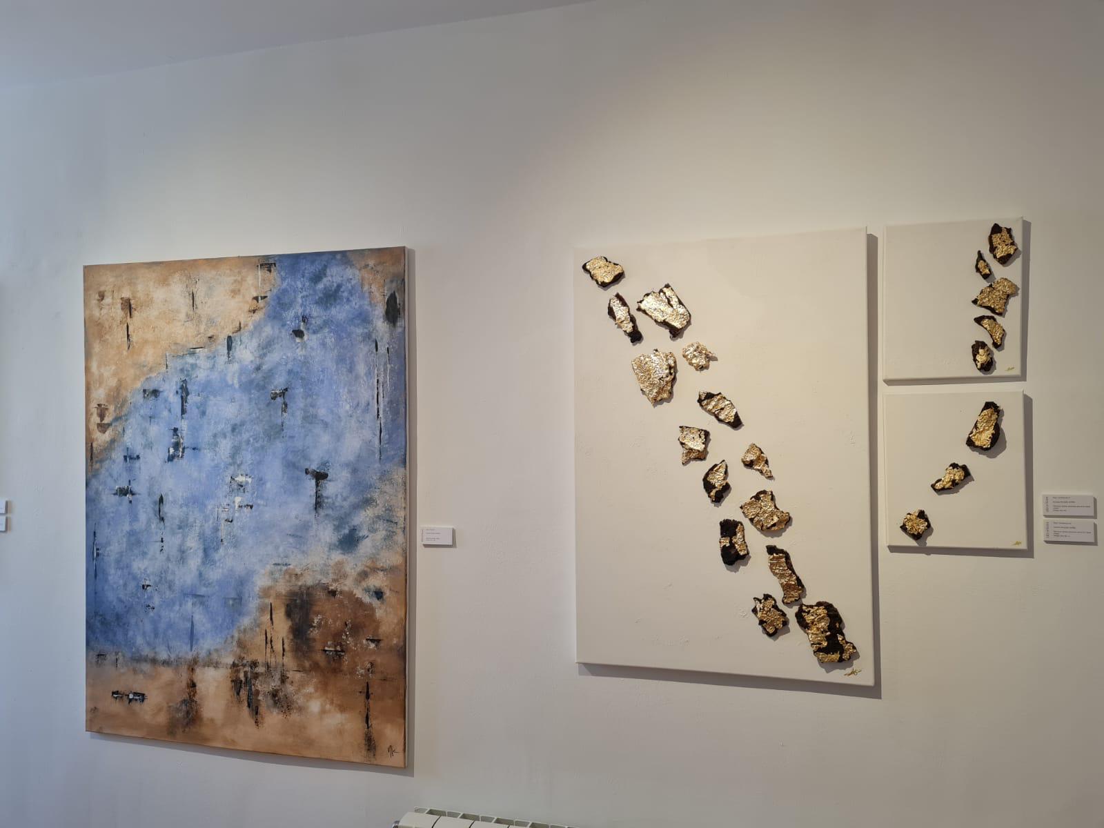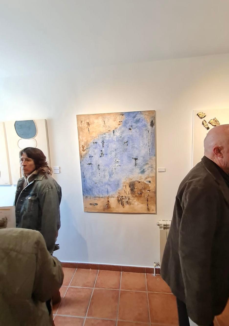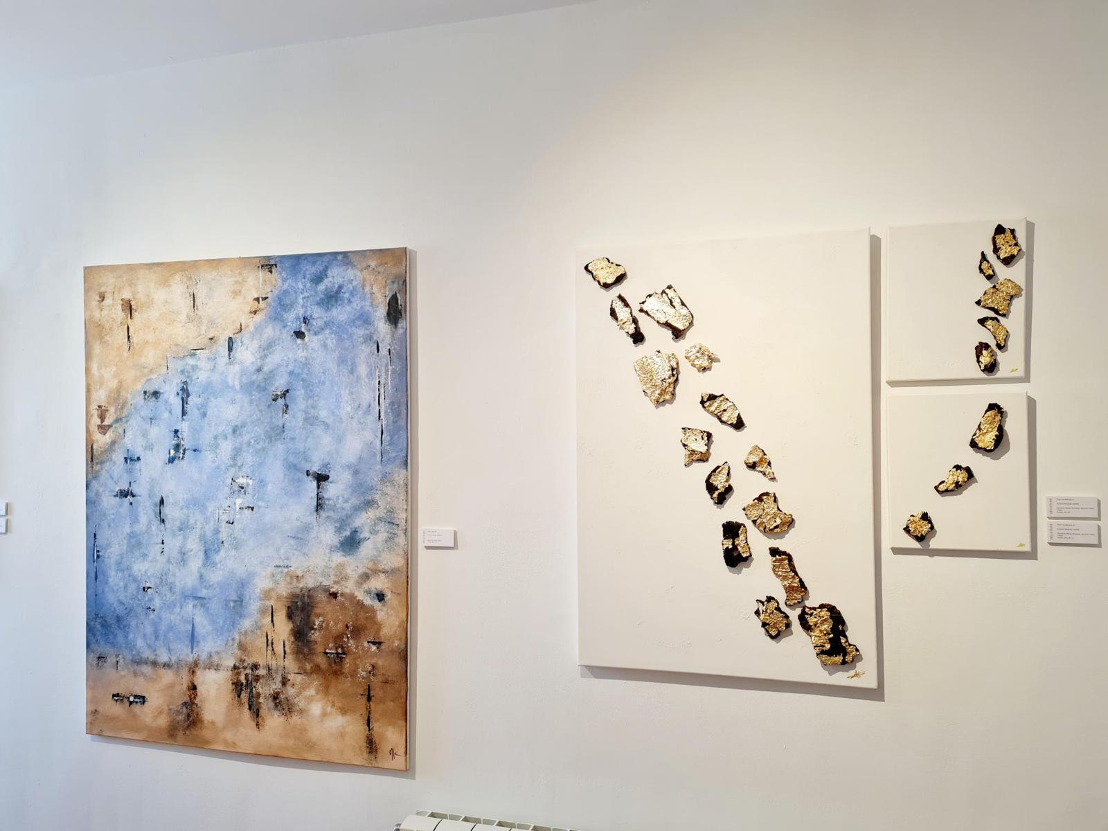 En esta colectiva, Olga no aporta obras decorativas, sino umbrales. Piezas vinculadas a sus colecciones Momentos y Susurros y Donde Habita el Alma conviven con el resto de propuestas, ofreciendo una capa de introspección que contrasta con la energía gestual de otros participantes. Color, textura y palabra funcionan como un solo lenguaje.