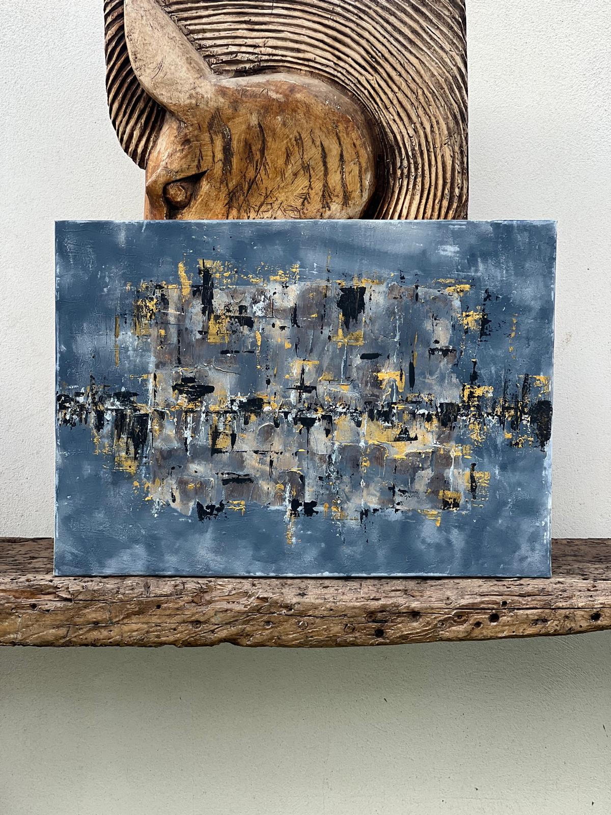 Entre el oro del alma, el incienso del pensamiento y la mirra del cuerpo, el silencio se hace luz. En esta obra, se convierten los tres dones sagrados en un lenguaje visual donde el color se vuelve rito y la materia, contemplación. El oro irradia la memoria luminosa, lo eterno, lo incorruptible, lo que trasciende el tiempo. El incienso, suspendido en veladuras de grises y azules, evoca el pensamiento que asciende, la respiración del espíritu buscando su forma más pura. La mirra, con su tono terroso y orgánico, recuerda la raíz, el cuerpo y la fragilidad que también cura. La pintura se convierte en un espacio de tránsito entre lo visible y lo invisible, entre la herida y la luz. En esa alquimia, se invita al espectador a una experiencia íntima, un viaje hacia el punto donde lo espiritual se encarna y lo material se hace trascendente. Así, “Oro, incienso y mirra” no es solo una obra, sino una ofrenda contemporánea. Una meditación pictórica donde la luz se vuelve presencia y el silencio, revelación.