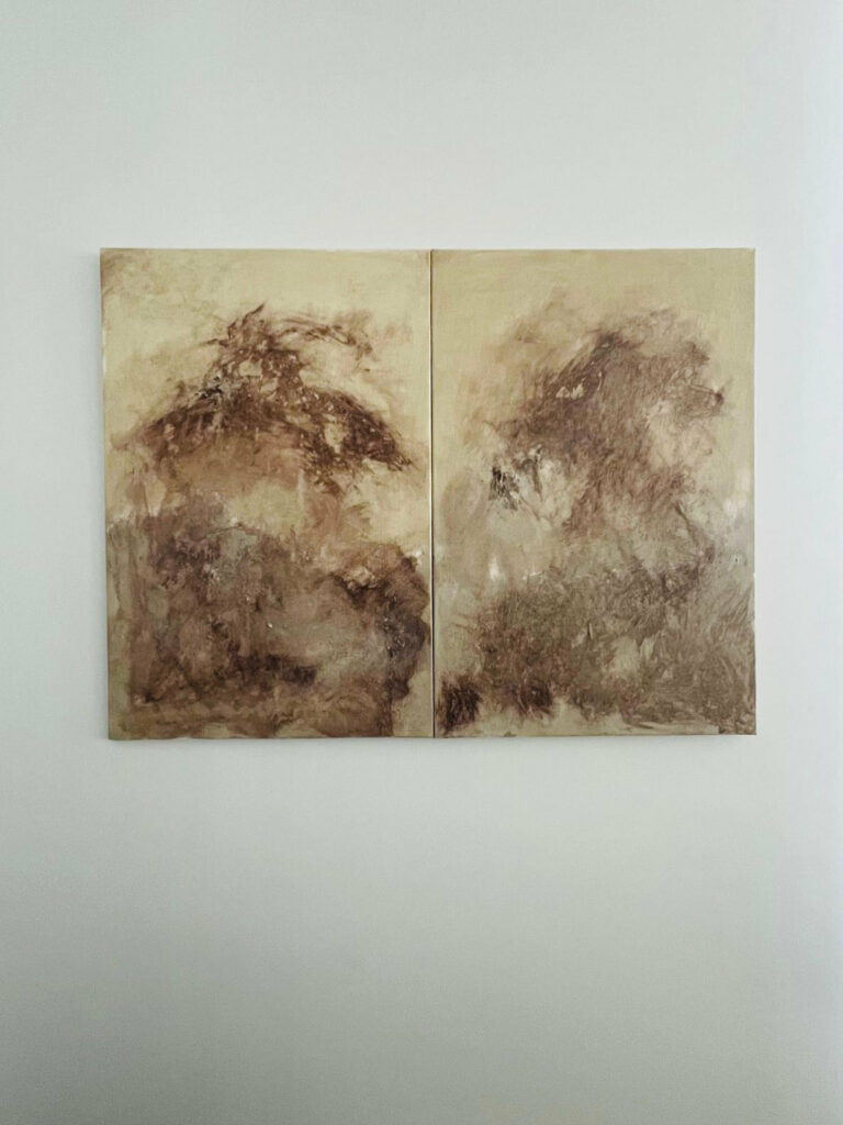 Tonos marrones cálidos en movimiento armónico. Es energía contenida que vibra desde lo más profundo. La materia parece danzar, fluir, como si el lienzo respirara en su propio ritmo.