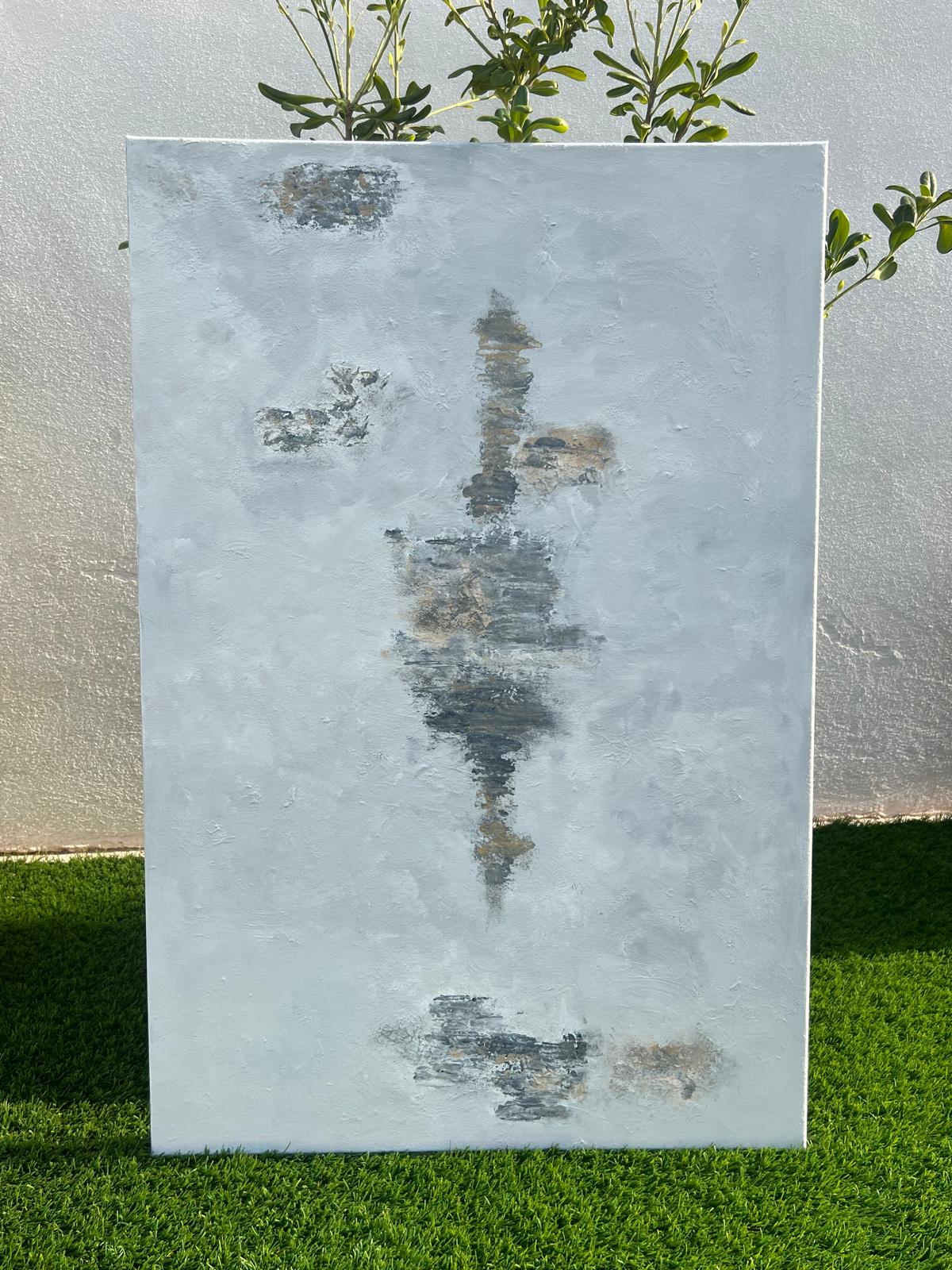 El nombre real es TOLVANERA, pero mi cuadro es la transfiguración de esa realidad…. Colores arremolinados, tensiones que se enfrentan y se entrelazan, partículas que se agitan como si fueran las células de una tormenta anímica. Refleja la turbulencia íntima de lo que habitualmente yace oculto, bajo el suelo de la rutina y que de golpe, se levanta con fuerza indómita. Así pues mi obra “TOЯVANERA” es una metáfora de lo etéreo, que cobra volumen….del instante en que lo leve se transforma en un fenómeno que nos sacude. Un recordatorio de que hasta lo más pequeño, lo más ínfimo, como una nube de polvo, puede contener la magnitud de lo sagrado en movimiento.
